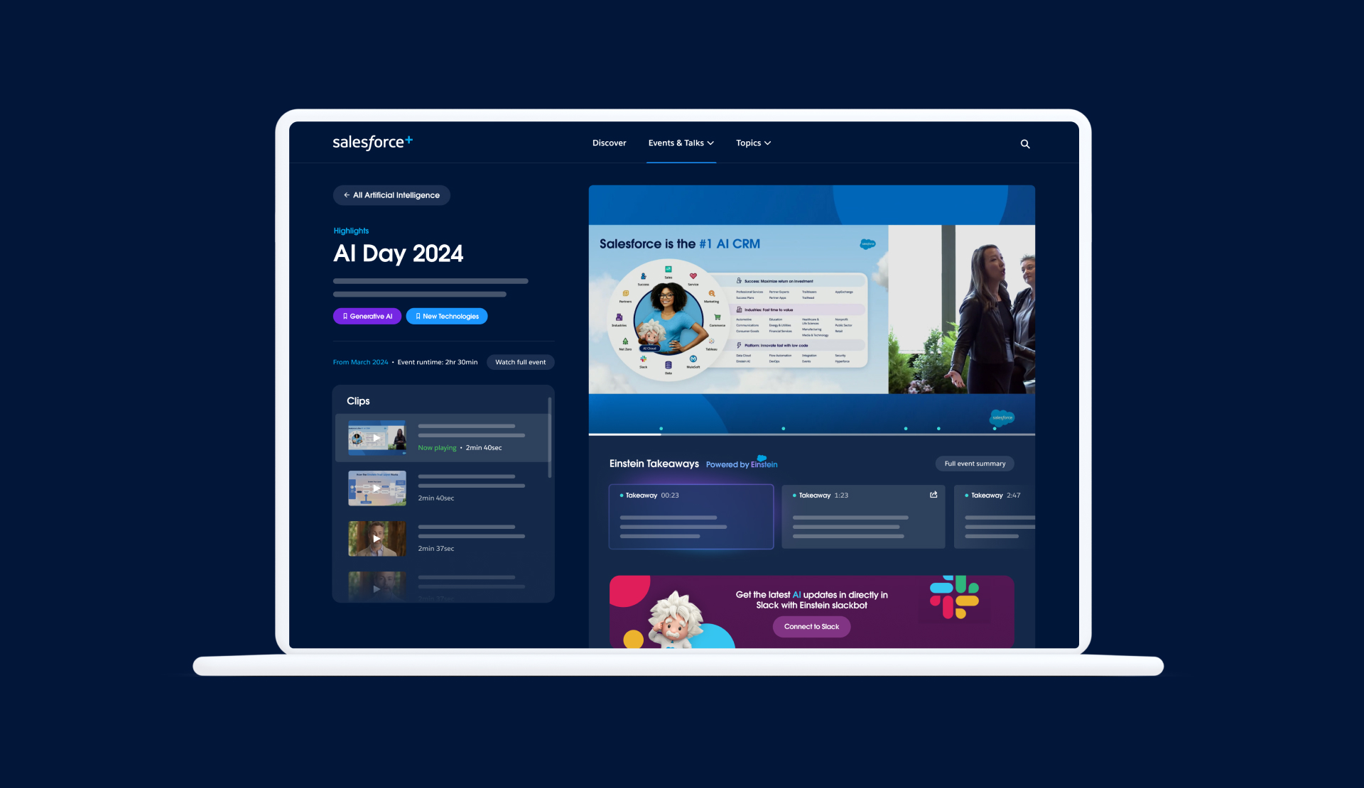 In 2020, amidst the uncertainty of the coronavirus pandemic, Salesforce began creating popular live and on-demand content related to evolving business challenges, the future of work, and wellbeing. Leading up to its Dreamforce conference in 2021, Salesforce saw an opportunity to make a splash by building upon its on-demand content catalog to include original series, livestreamed event keynotes, sessions and performances. Together we set out to envision one centralized content platform to inspire the leaders of tomorrow with trusted, premium content and connected, best-in-class experiences.